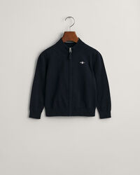 Idéal pour la vie de tous les jours, ce cardigan pour enfant en coton présente une coupe regular unisexe. Il possède une fermeture à zip sur le devant et un petit écusson brodé sur la poitrine, le tout complété par des bords-côtes au niveau du col, de l'ourlet et des poignets.