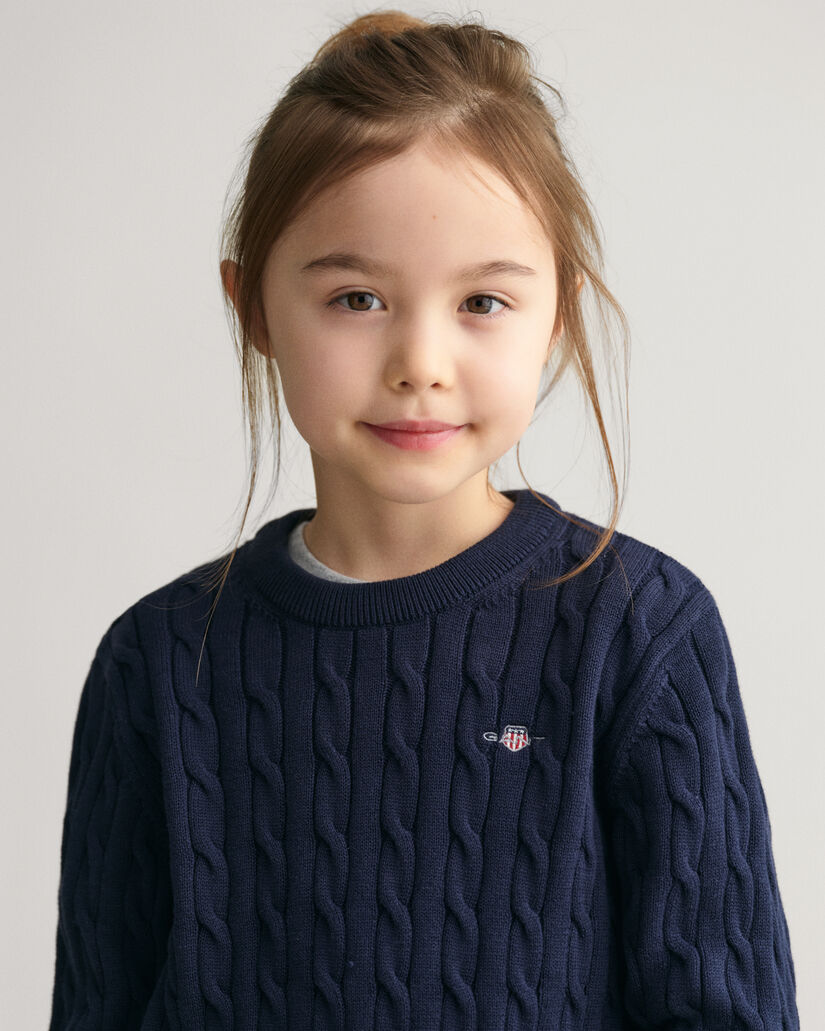 Pull col rond en maille de coton stretch à torsades Ado Fille