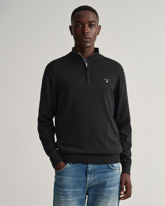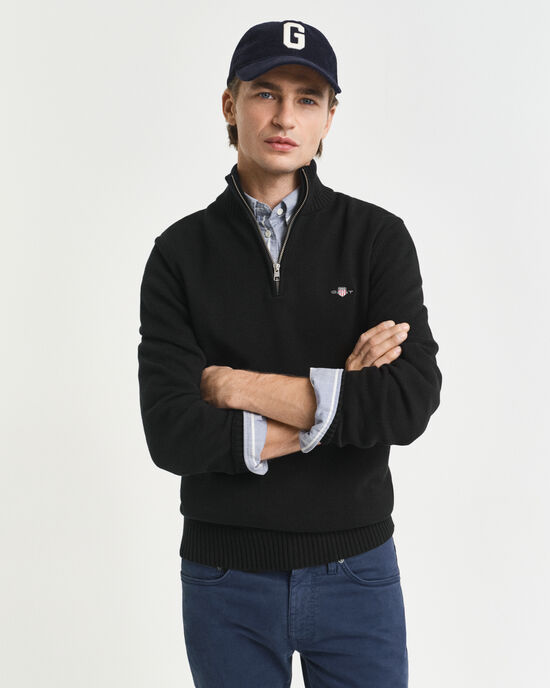 Pull à demi-zip en coton piqué