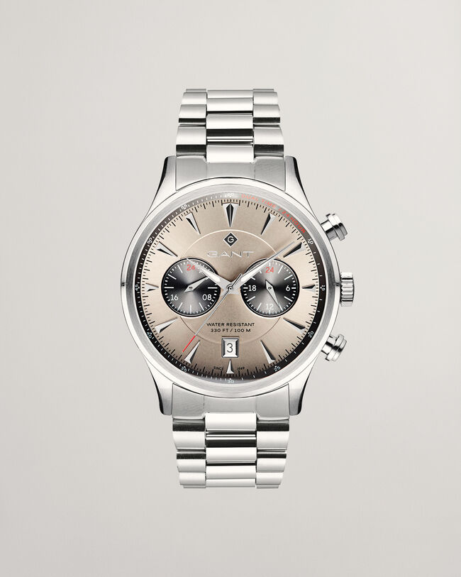 Dans un style à la fois classique et athlétique, notre collection de montres pour homme conjugue innovation et savoir-faire de pointe pour illustrer le credo de GANT : ne jamais cesser d'apprendre. La montre Spencer est conçue en acier inoxydable et en verre minéral. Elle est équipée de trois aiguilles, d’une double fuseau horaire, d’un guichet de date et d’une horloge de 24 heures.