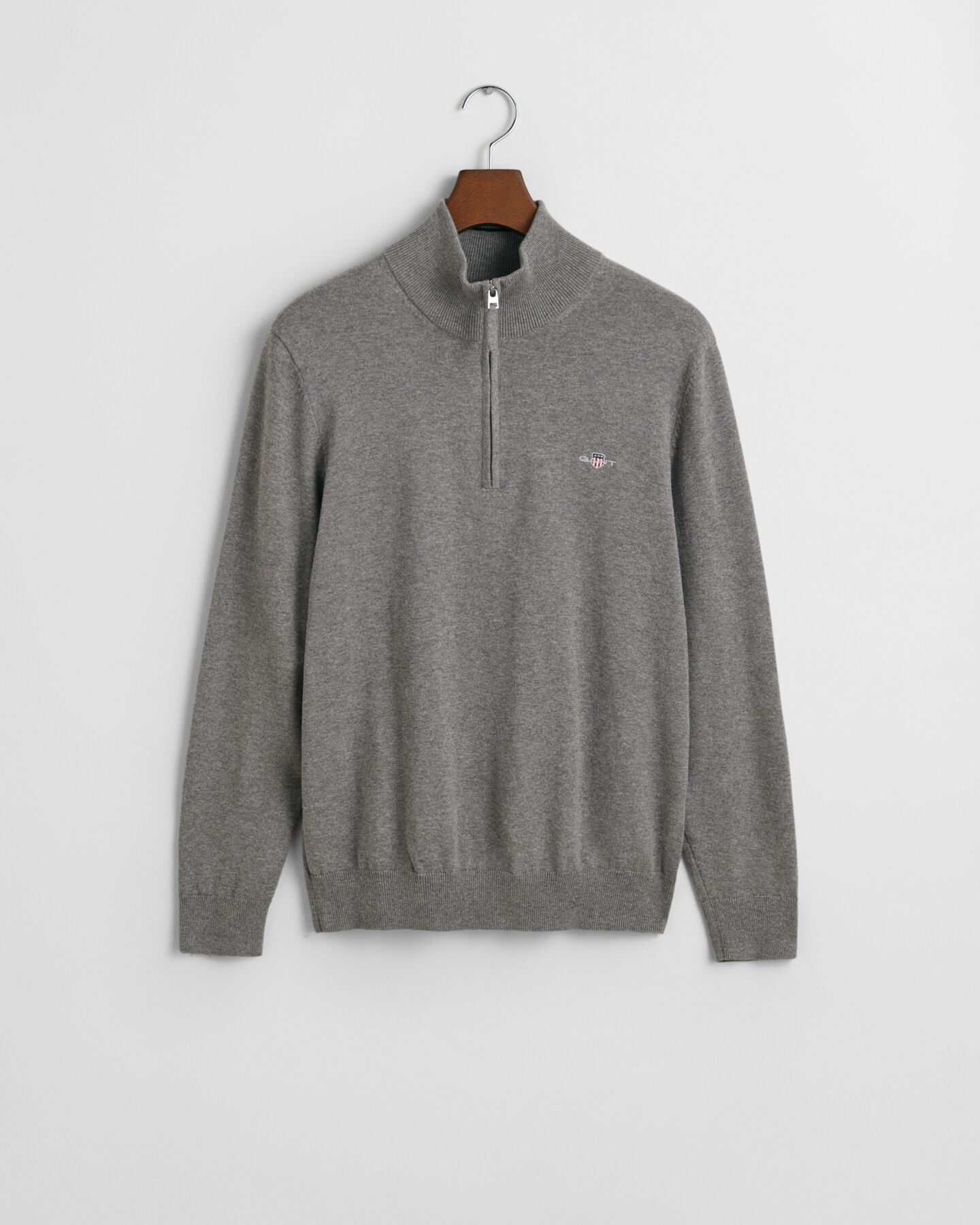 Ce pull en coton présente une coupe regular, un col à demi-zip, des finitions côtelées et un écusson Gant brodé au niveau de la poitrine.
