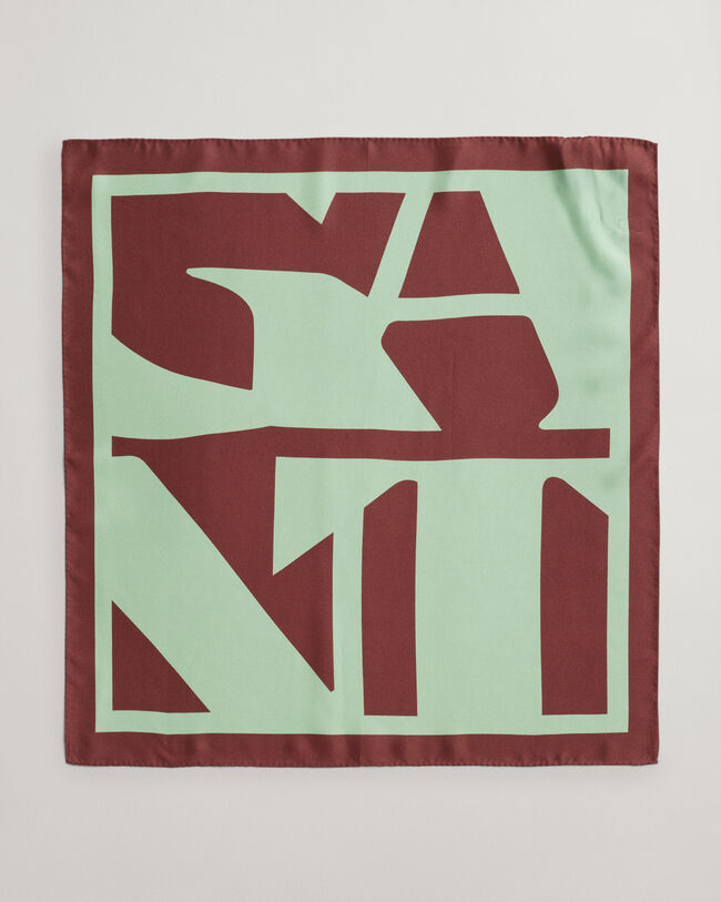 Deze sjaal is gemaakt van 100% zijde en heeft een seizoensgebonden grafisch logo met een opvallende rand.
